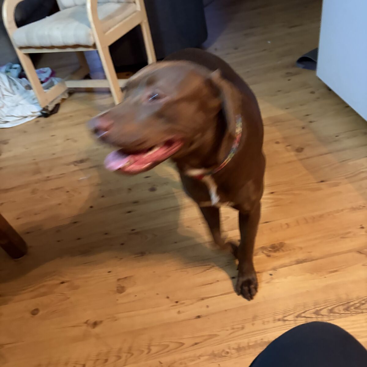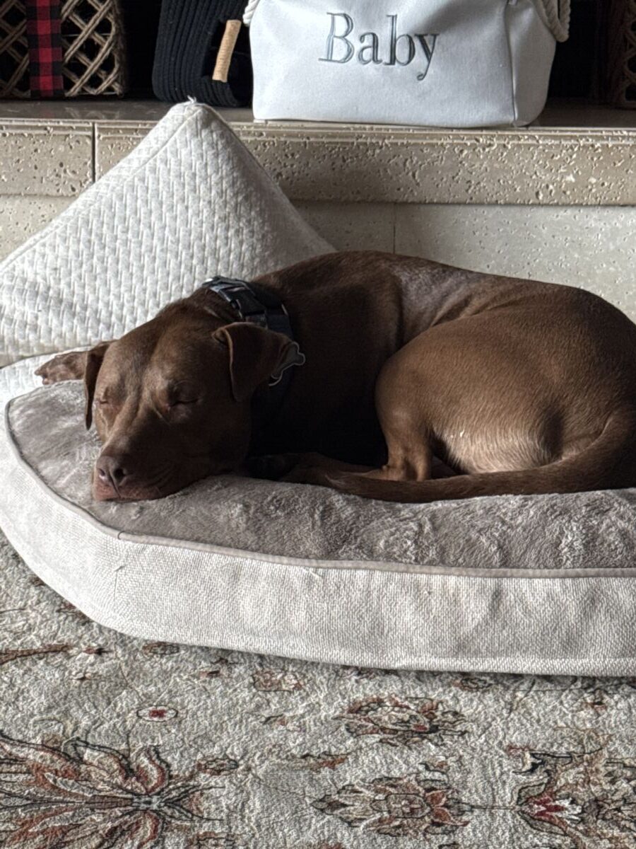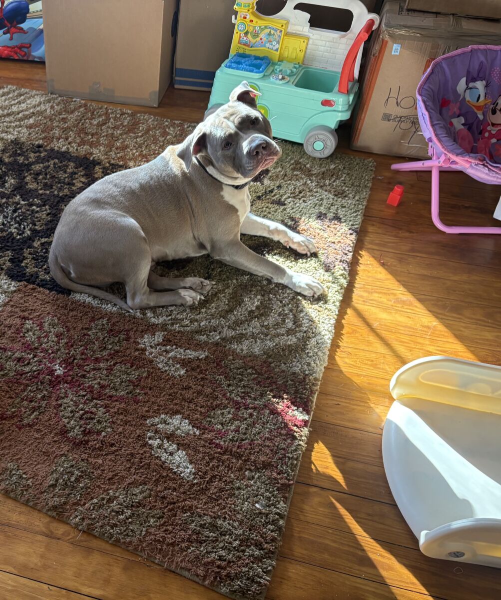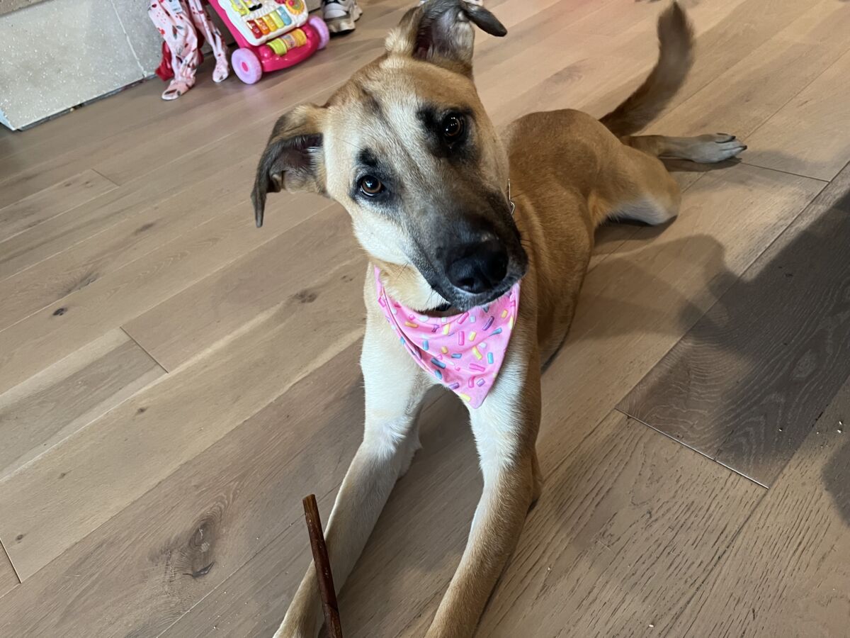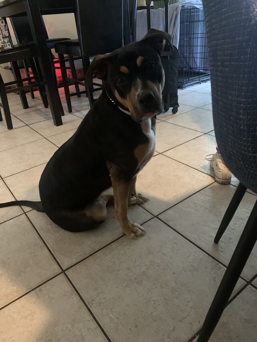 About Me: She’s certainly a cuddler! She loves to play fetch and run around our large yard. She’s energetic, but also gentle when she’s around our 3 year old. She also loves to play with our smaller dog and our fluffy cat! She gets shy around new people, but immediately warms up to them after they give her belly rubs! She doesn’t bark often; she only barks when our other dogs do it. She’s VERY intelligent, so no doubt she will be a great dog to train!