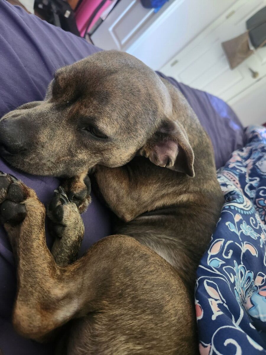 About Me: Bertha does well with other dogs of any size and children of all ages. She needs slight obedience training when it comes to not pulling on a leash when walking. Bertha has free run of the house but is crate trained when needed to be crated. Completely housebroken and does not chew or jump on furniture. She loves blankets and tug toys. Her favorite treat is ice cubes.