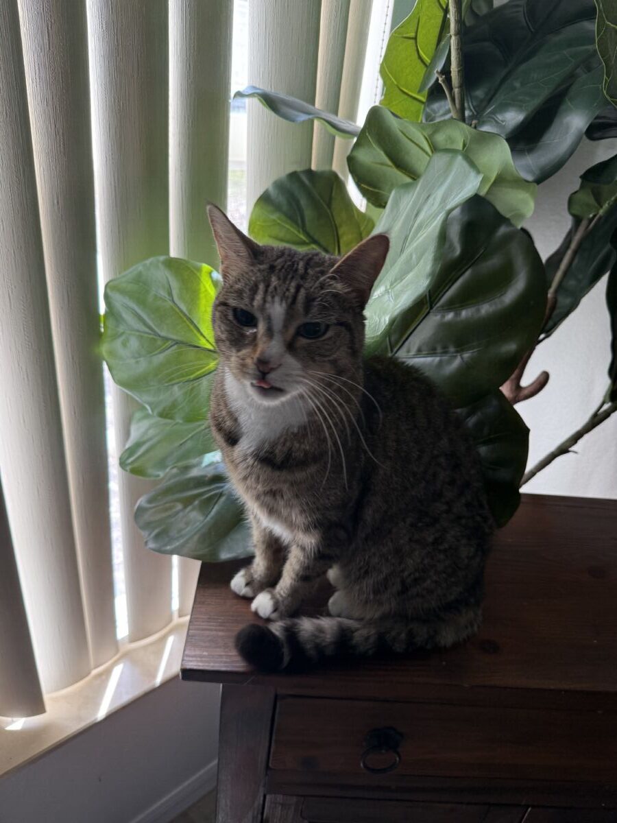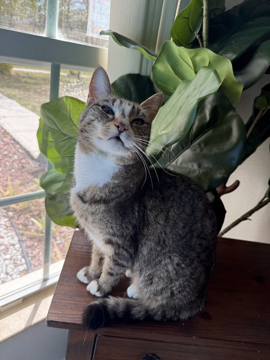 About Me: She absolutely loves to sit by the window and watch wildlife, she also enjoys going outside (supervised or in a screened in porch) she also loves to hear (do you wanna eat?”) she enjoys head scratches and chin scratches but will let you know once she had enough.