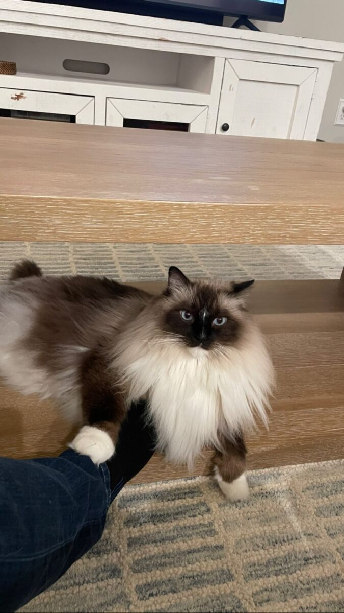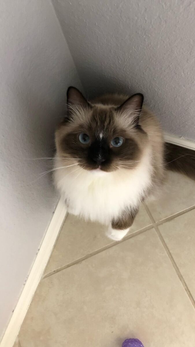 About Me: We are looking to rehome our 8-year-old Ragdoll cat that we have had since he was a kitten. He is very gentle and affectionate with adults but becomes anxious around small children and loud environments. After a recent incident with our toddler, and adding another baby to our family we need to find him a calmer home where he can feel safe.