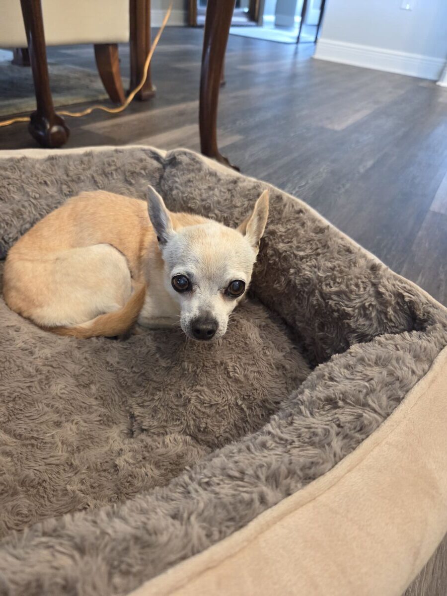 About Me: Lily Joy is a very sweet girl who likes ppl, likes cats, never snappy. However, she doesn’t like her own species. Sitting in your lap or near you is what she enjoys most. She doesn’t like being alone. She is hard of hearing but obeys hand signals well.