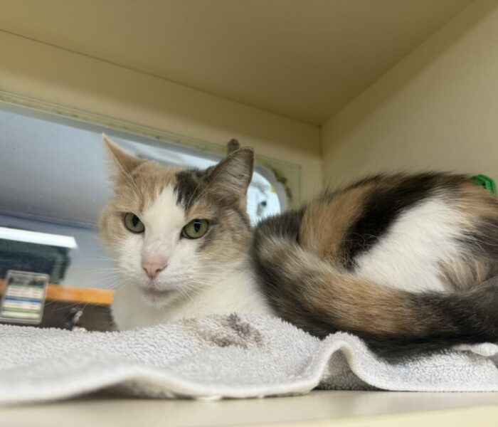 Angel is a stunning, mature dilute calico with a cloud‑soft coat, a sweet spirit, and enough feline charm to light up an entire room. She’s affectionate, gentle, and absolutely knows how to work her magic.
