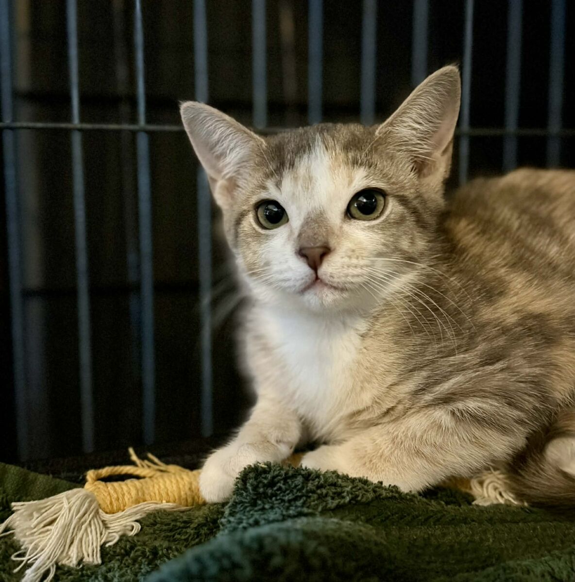 Bitsy warms up at her own gentle pace, but when she does, her playful side comes out in full force—pouncing on toys, chasing her siblings, and showing off her kitten antics. She’s sweet, social, and spirited, with just the right balance of caution and curiosity.