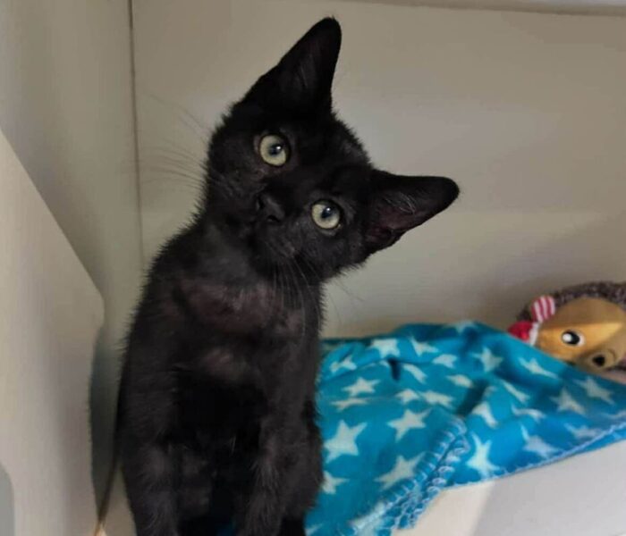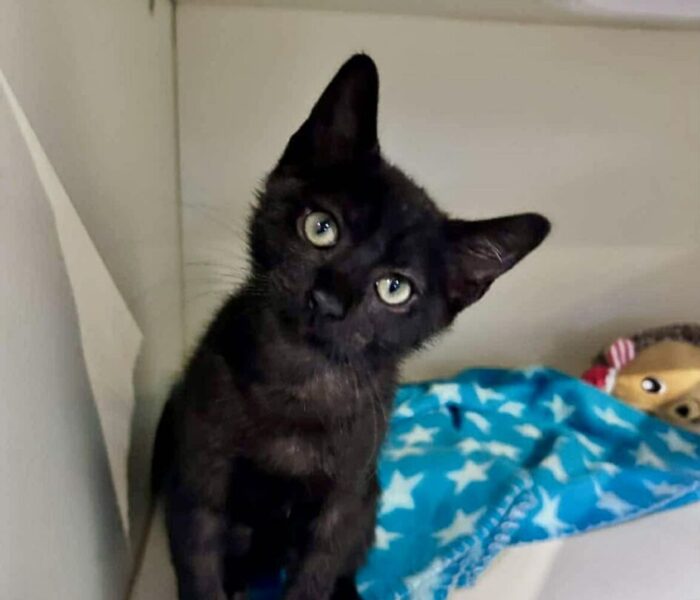 Carter is an 11‑week‑old shadow‑soft sweetheart with the sleekest black coat and the quiet confidence of a tiny panther in training. He glides more than he walks, pounces with perfect kitten drama, and looks absolutely stunning doing it. His bright eyes pop against his inky fur, giving him that classic “mysterious but adorable” vibe that makes people fall instantly in love.