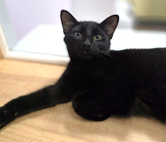 Cluck is a shadow-soft sweetheart with a heart full of purrs. This all-black baby boy is mysterious in looks but totally transparent in love—he’s all about snuggles, playtime, and following you like a tiny panther sidekick. With his silky coat and gentle nature, Cluck is the kind of kitten who quietly steals your heart and never gives it back. Ready to meet your new best friend? Cluck’s waiting to cast his spell!