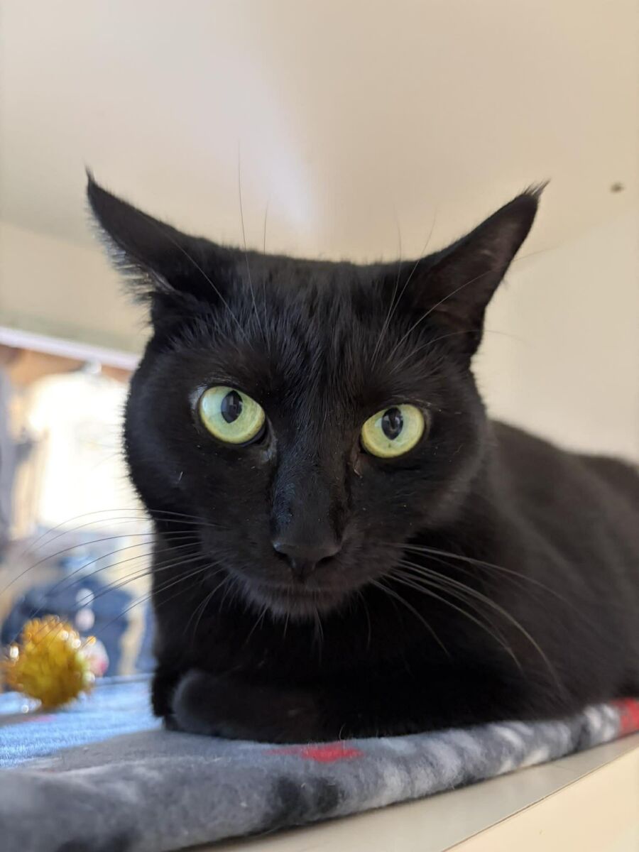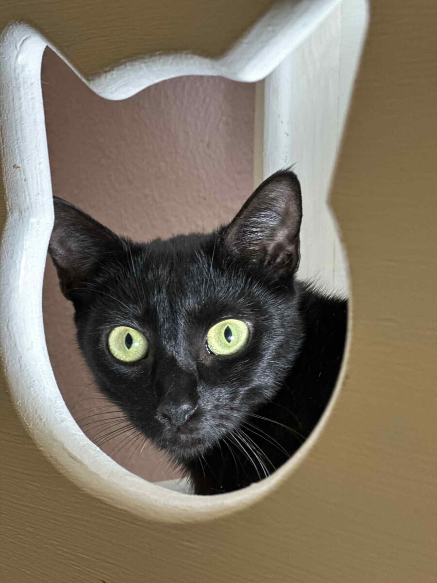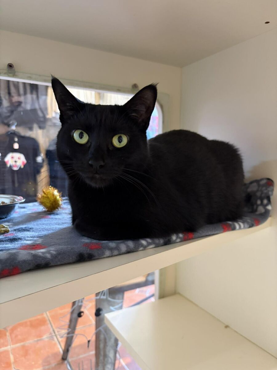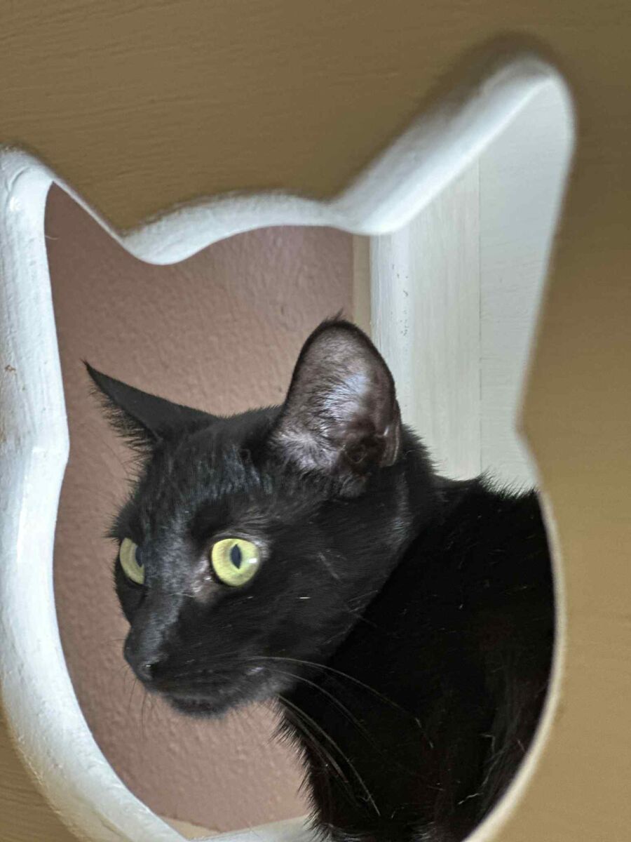This sleek black sweetheart is friendly and affectionate once she feels safe – she even likes belly rubs. She may be a little shy in new surroundings, but with patience and kindness, Indie blossoms into a loving companion who enjoys attention and connection. She’s earned her crown and is looking for a home where she can relax, be adored, and finally enjoy life on her own terms.