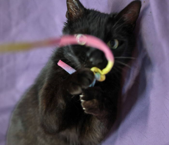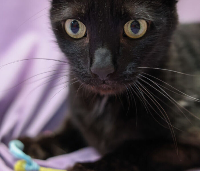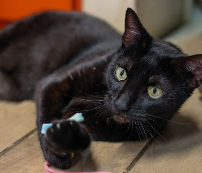 Midnight and Paco are two gorgeous 8‑year‑old black cats, each marked with similar white “chest stars”. They look alike but not so much that you can’t tell them apart. Brothers and best friends since kittenhood, they’ve spent their whole lives side‑by‑side. Originally adopted together from HALO, they were recently found as strays, still together—how they ended up on their own is a mystery—but things are looking up now. These sweet, steady boys are gentle, affectionate, and deeply bonded. They’re ready for a forever home where they can stay together and finally settle in for good.