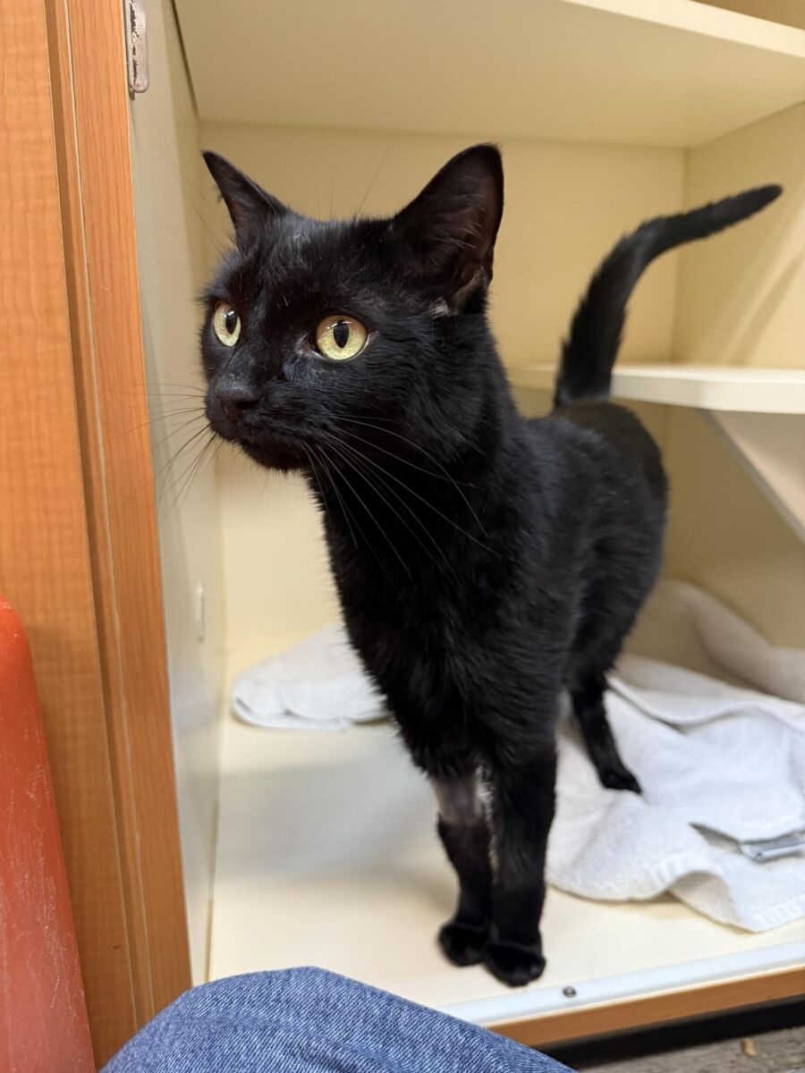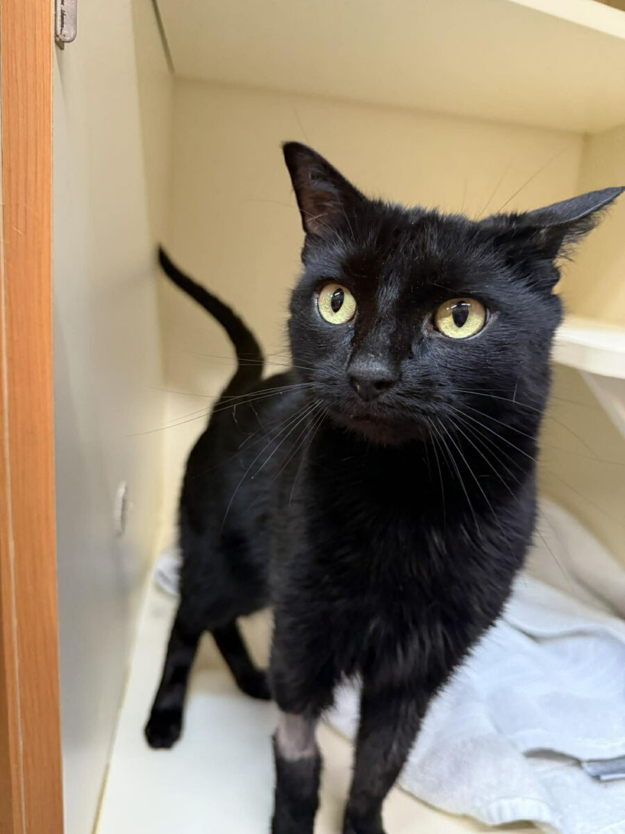 Midnite isn’t just a cat — she’s a survivor with a viral résumé. This gorgeous, sleek black kitty made ABC News, Good Morning America, and People (and more than we have room to mention) after pulling off the stunt of a lifetime. What did she do? Oh, nothing major… just ate 26 hair ties, caused a full intestinal blockage, underwent emergency surgery, and survived like the absolute queen she is.