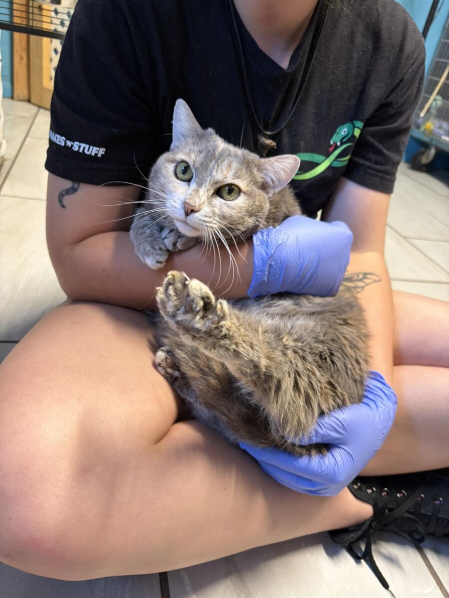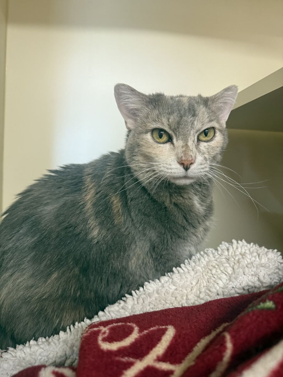 Monkey is a 7‑year‑old dilute calico beauty with the *best* facial expressions — curious, dramatic, delighted, mildly offended… she’s got a whole catalog, and she’s not afraid to use it.