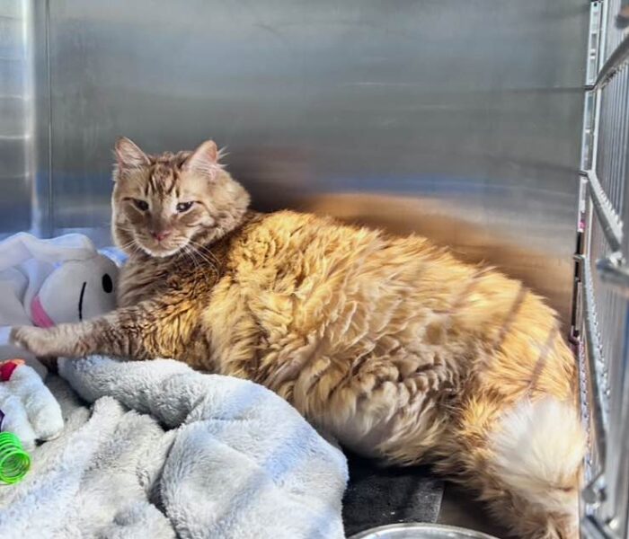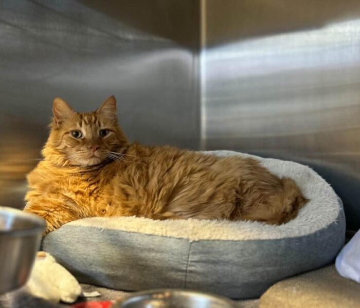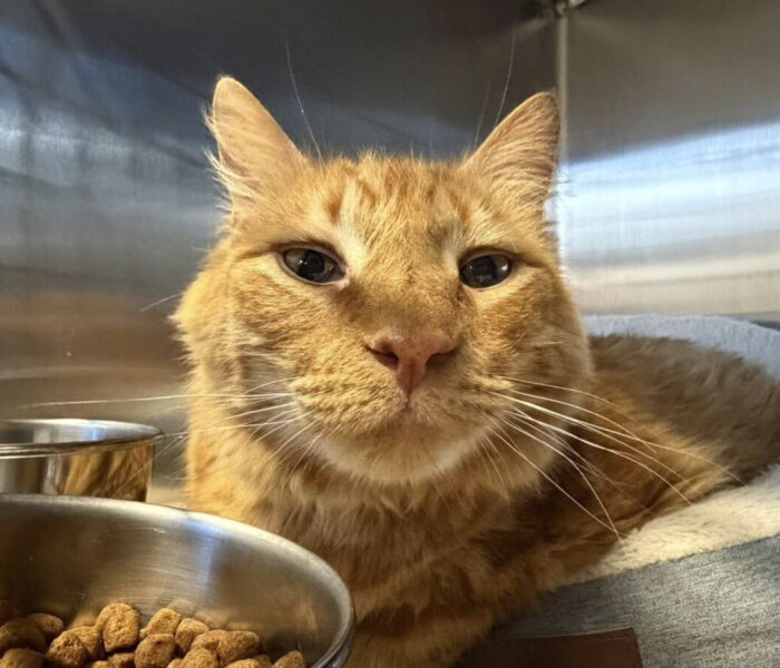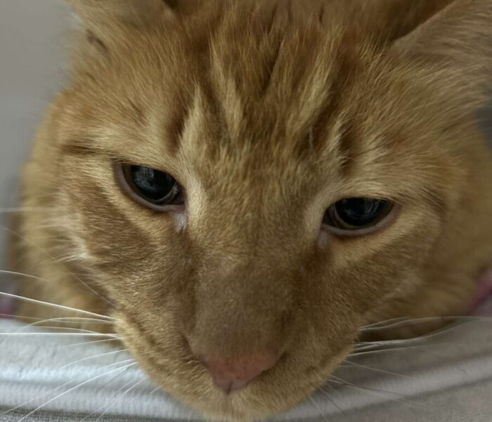Oliver is a glorious, big, fluffy orange gentleman who brings instant warmth to any room he graces. At about 8 years old, he’s perfected that irresistible blend of calm confidence and plush, huggable charm—think “regal lion” meets “oversized living throw pillow.” He’s not petite, no, but that just means there’s more of this fellow to love, admire, and gently boop on the nose.