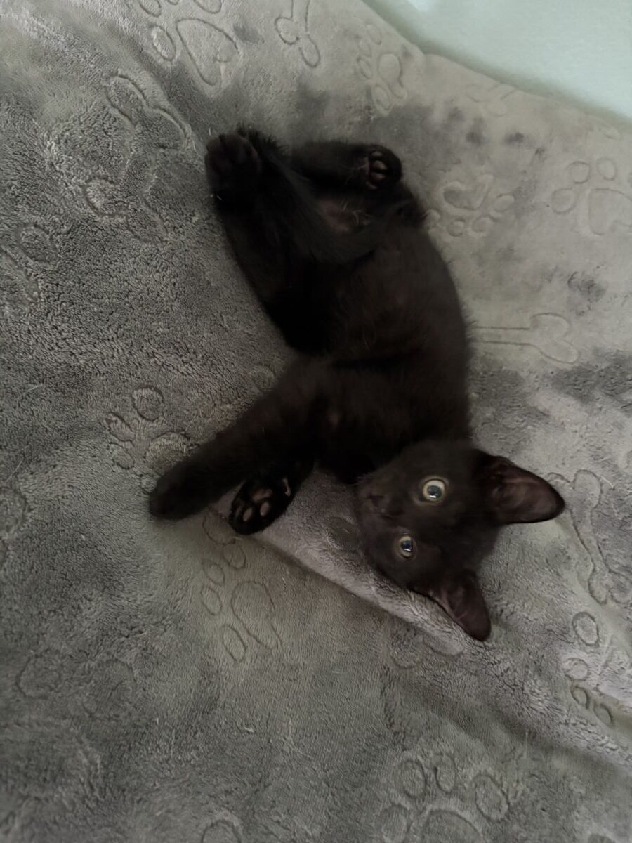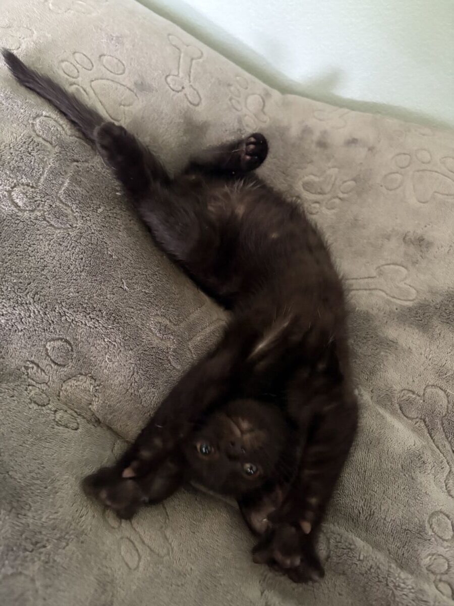 Phantom is our little space cadet. He’s sweet, gentle, and perpetually confused about what day it is. He’ll stare at you like you’re the moon, then trip over his own feet trying to get to the cat tower. He’s not cuddly, but he’s endlessly lovable—and very into supervised plastic bag adventures.