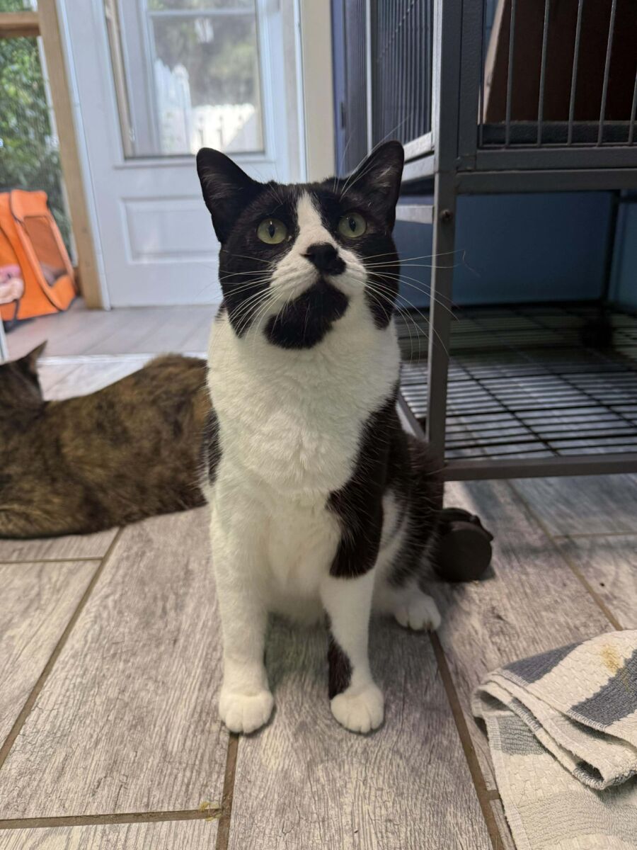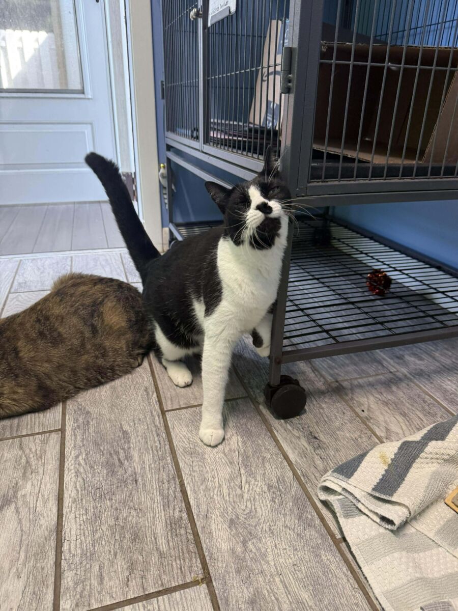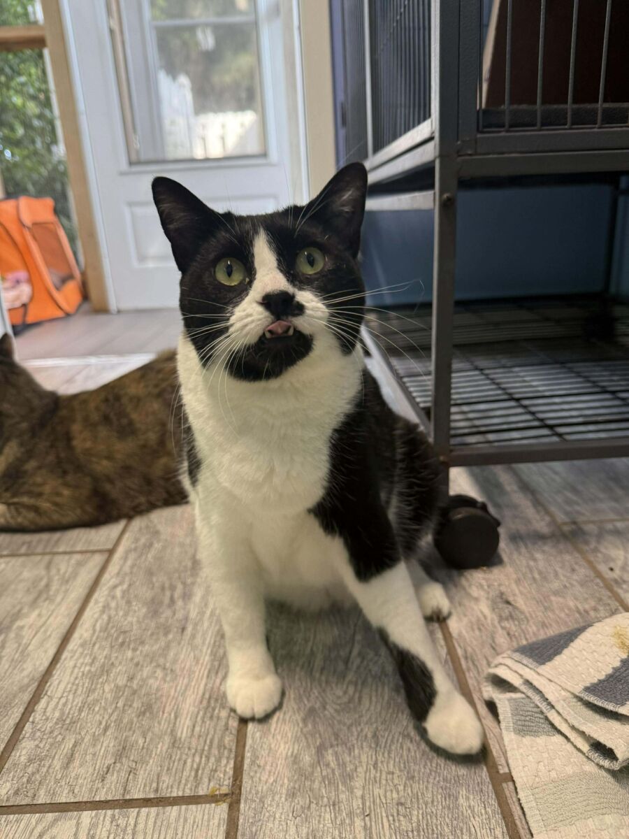 Ahh Sage — the perfect little tuxedo girl you’ve always wanted! Sweet but not sticky, delightfully calorie‑free, and guaranteed to brighten your day. She’s a fun, spunky little sprite with a playful personality that pops the moment you meet her. Sage is Feline Leukemia positive, which simply means she’ll thrive best with other FeLV‑positive friends or as your one‑and‑only star. Come say hello to this darling little lady — she’s ready to charm you the second you walk in.