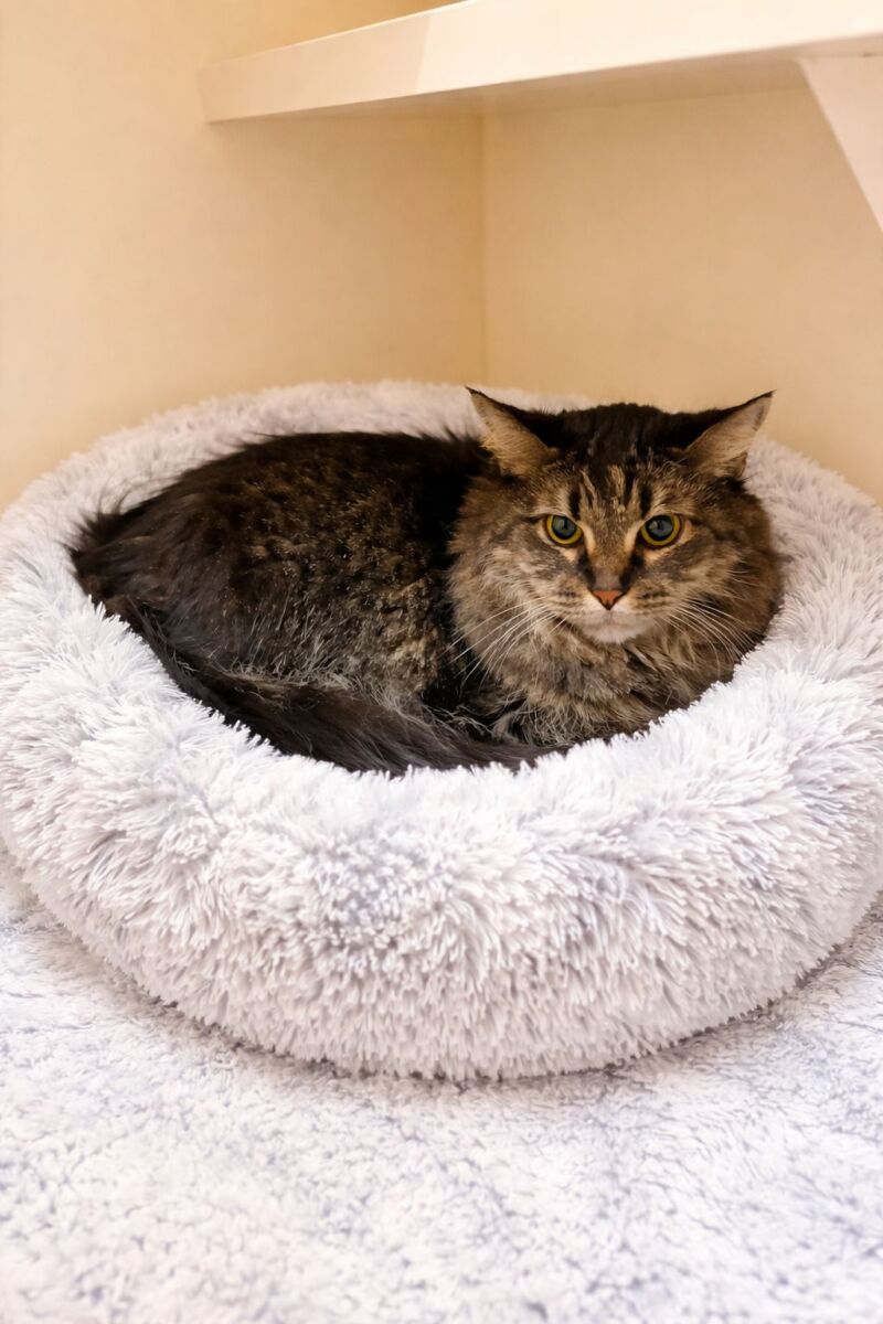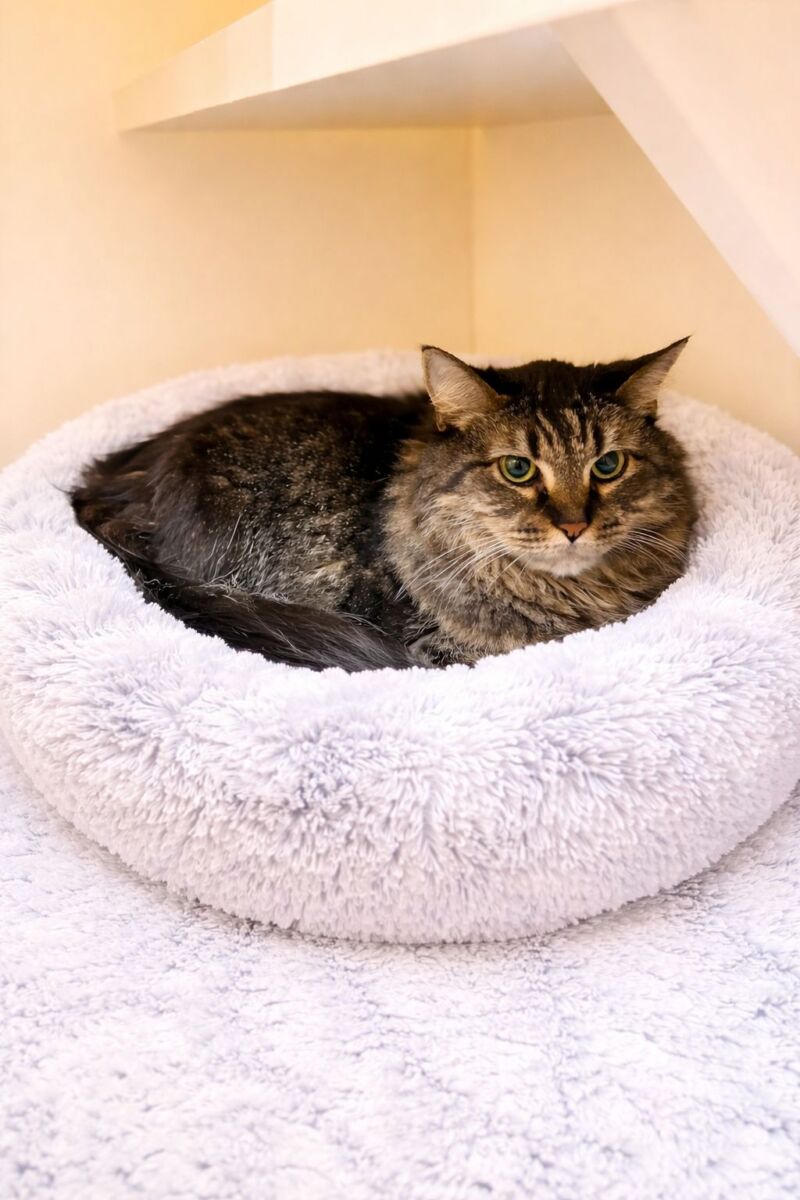 Sanity is confused right now, trying to understand why everything changed. But beneath that uncertainty is a cat who wants to trust again, who wants to curl up beside someone and feel at home.