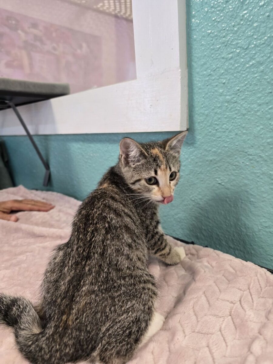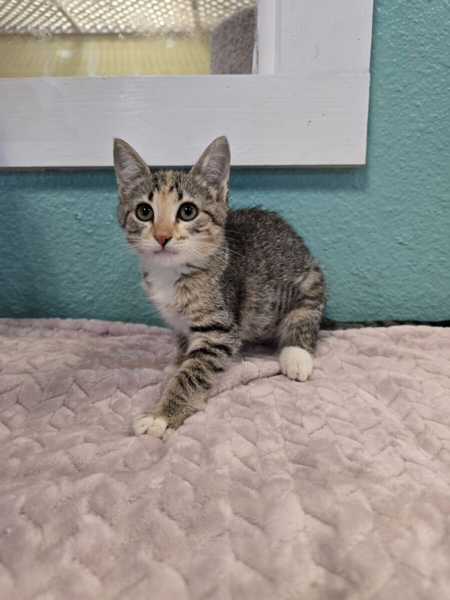 **Squirt** is a pint-sized patched tabby with a heart full of sunshine and one irresistible orange kiss right on her forehead ๐Ÿ’›. This tiny lovebug is all cuddles, purrs, and playful wiggles. Whether sheโ€™s chasing shadows or curling up for a nap in your lap, Squirt brings joy in the smallest, sweetest package. Stop in to ome meet this darling girl and let her sprinkle your life with love!