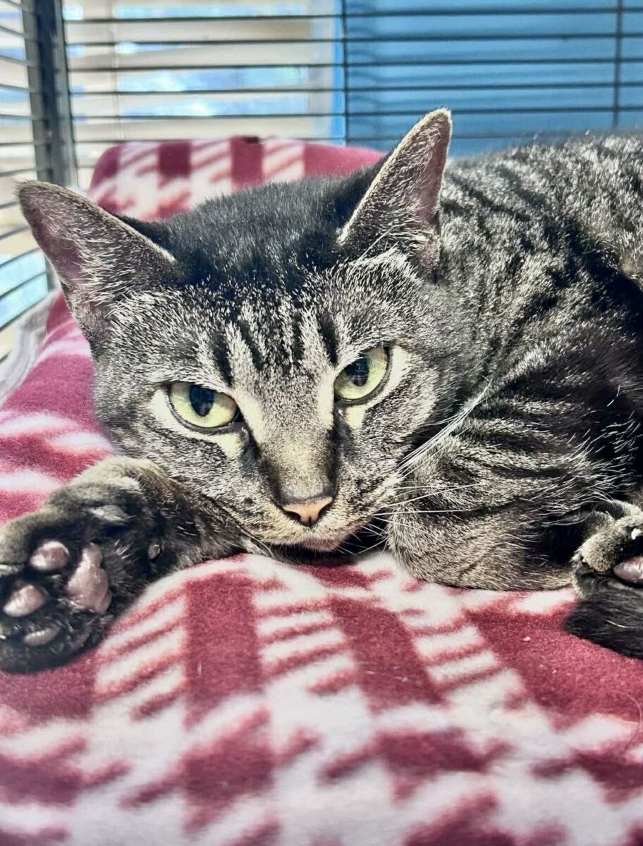 This sweet 3‑year‑old tabby has the kind of striking dark stripes you notice right away—bold, beautiful, and uniquely hers. She was found as a stray, but you’d never guess it from her gentle nature. She’s soft‑spoken, affectionate, and so grateful for every bit of kindness that comes her way.