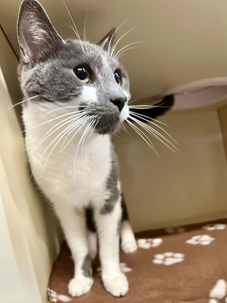 Uzi is ready to bring peace, love, and a touch of feline elegance to his forever family. If you’re looking for a cat who fits seamlessly into family life while offering endless cuddles, Uzi is your boy.
