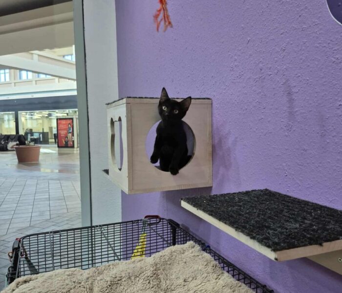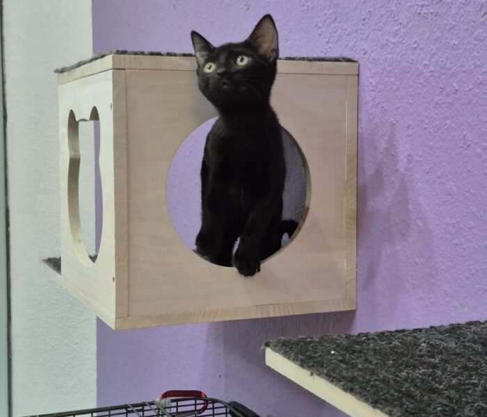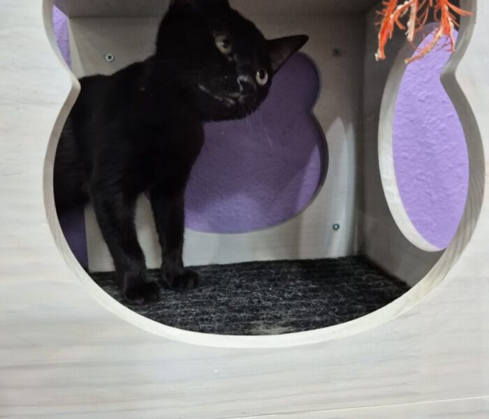 This sleek little black kitten is as irresistible as his name. Yams may be small, but he’s bursting with personality—an adorable “mini panther” who’s equal parts playful and snuggly.