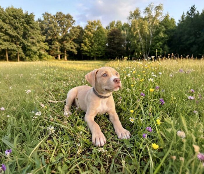 Evergreen is a cheerful, bouncy pup who seems to take everything in stride. She has that easygoing, happy puppy energy—ready to play, explore, and enjoy whatever the day brings. She’s not a wallflower and will happily join in on attention, toys, and new experiences.