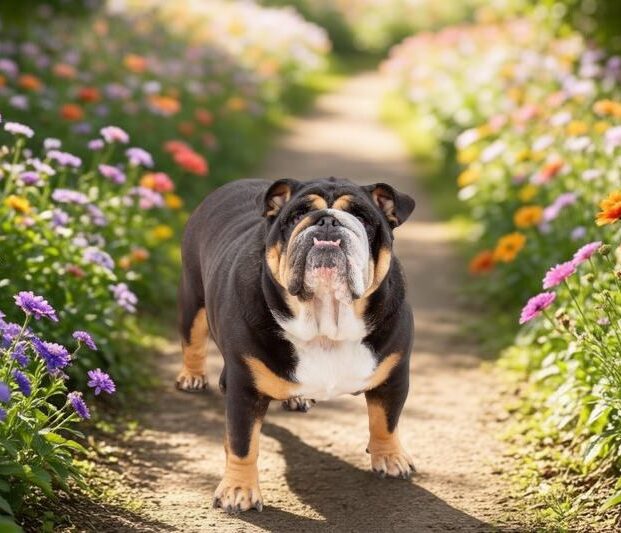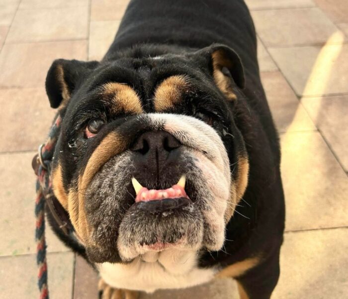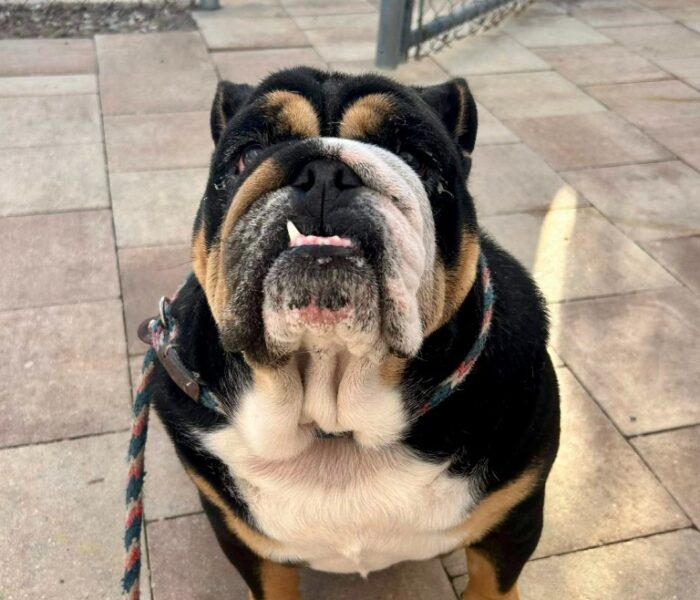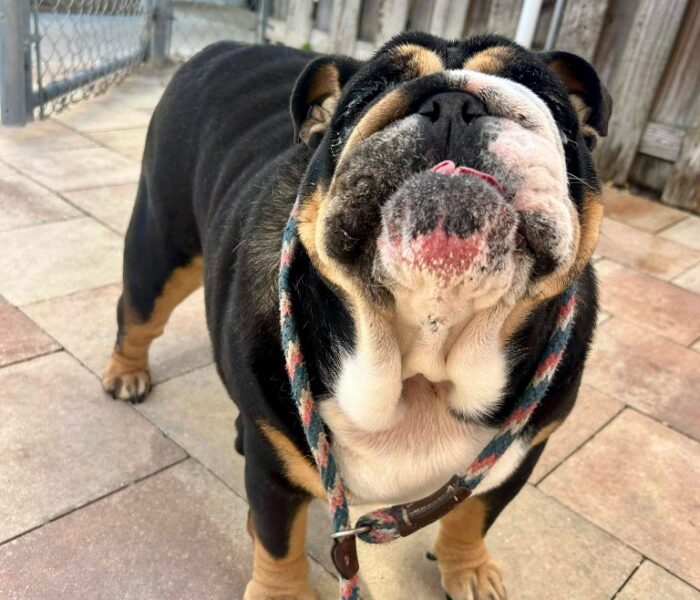 I do get playful bursts of zoomies (purely for entertainment — I never run away). Towels are top-tier toys, I occasionally headbutt random objects, and yes… I can be a little messy at mealtime. It’s part of my bulldog charm. I’m housebroken and get along well with both dogs and cats, even though I didn’t live with other pets before. I’m easygoing and social — just please remember I am a queen and do not appreciate being talked back to.