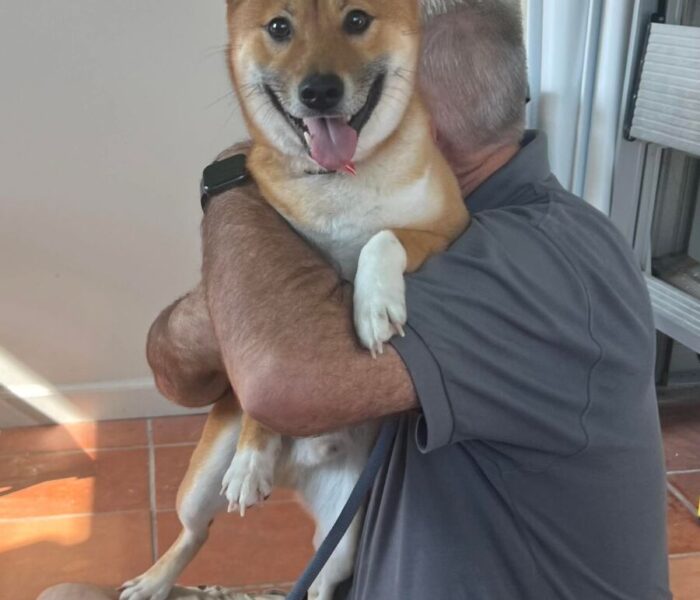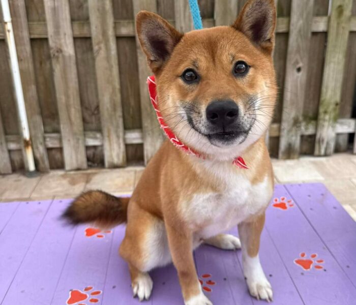 I’m a one-year-old Shiba Inu with a curly tail, a big personality, and tons of puppy energy.