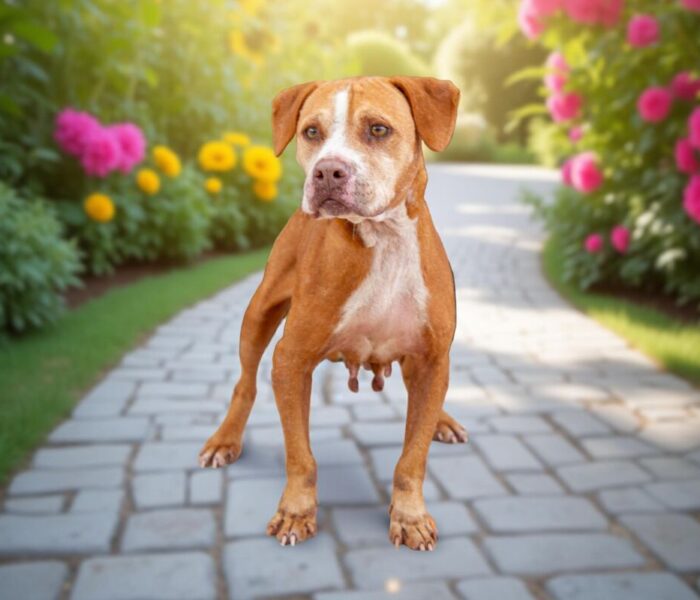 Pumpkin Pie is an 8-year-old female with a heart as warm as her name. When she was found as a stray, she was skinny, exhausted, and covered in mud. With good food, vet care, and plenty of love, she has made a beautiful recovery — blossoming into a healthy, calm, and incredibly sweet companion.