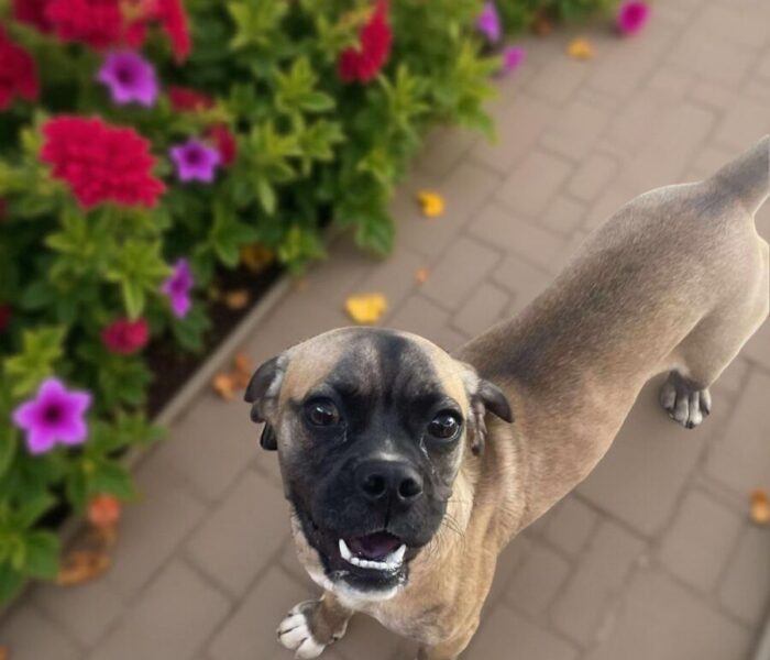 I was lovingly surrendered because my previous human was an older adult who couldn’t keep up with all my puppy energy. Nothing of my own doing, I’m just a bouncy, playful kid who wants to explore the world, make friends, and wiggle my whole butt when I’m excited (which is… a lot).