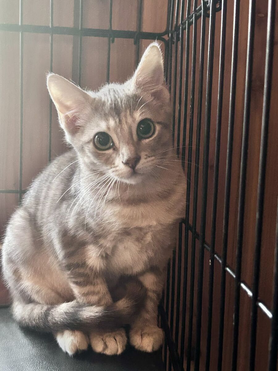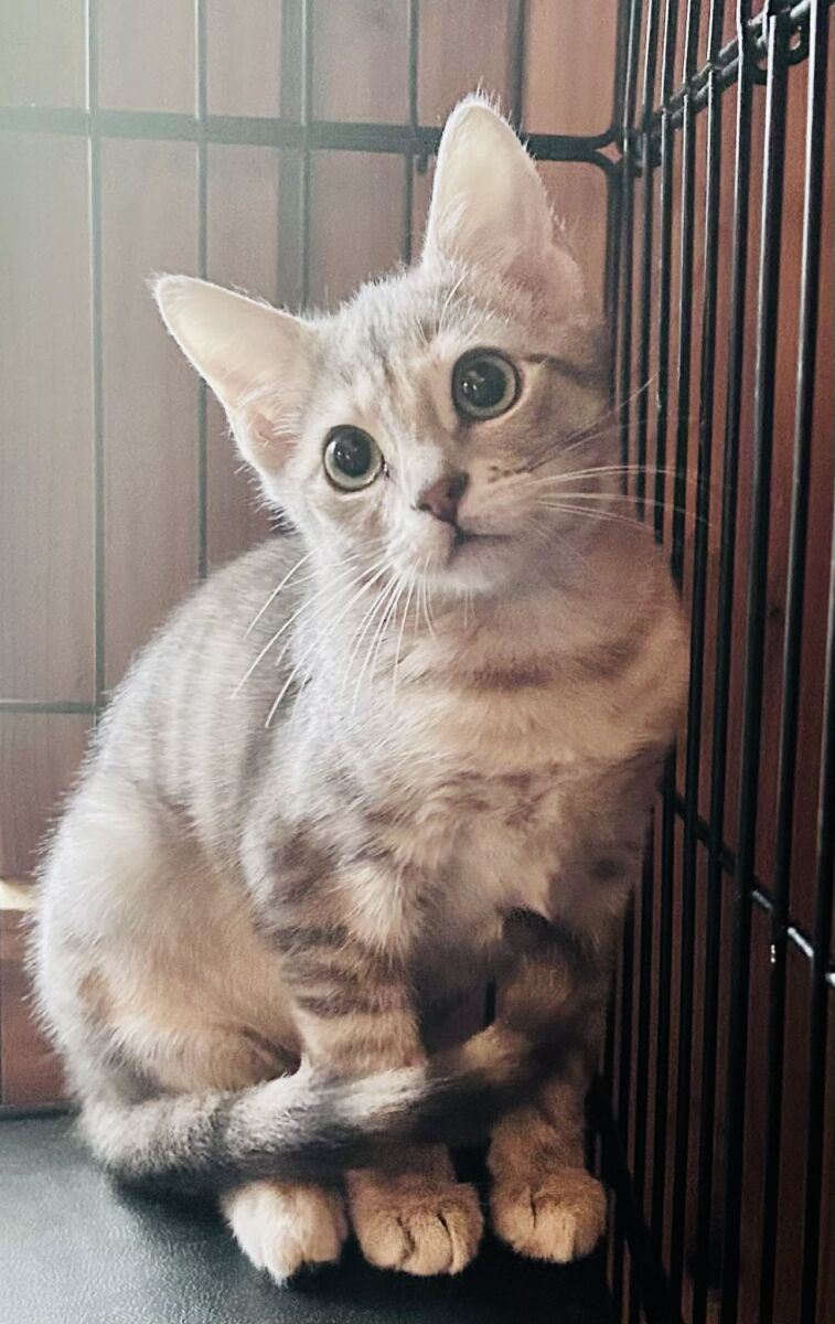 Once she warms up, her sweetness shines through in the most endearing ways: quiet purrs, gentle head bumps, and the tiniest bursts of playful curiosity. She’s timid at first, but never aloof—just a cautious girl who appreciates patience, kindness, and the comfort of following her siblings’ lead.